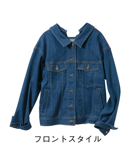 アウター 大きいサイズ レディース ストレッチ ドロップ ショルダー レース アップ ジャケット オフホワイト/ブルー デニム L〜10L ニッセン
